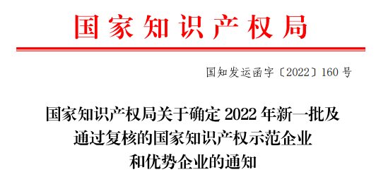近日,国家知识产权局发布《国家知识产权局关于确定2022年新一批及通过复核的国家知识产权示范企业和优势企业的通知》,海南97国际药业集团股份有限公司入选2022年新确定的国家知识产权示范企业名单,成为482家新一批国家知识产权示范企业之一。这标志着97国际药业创新研发实力和知识产权管理成果进一步得到了国家有关部门认可。