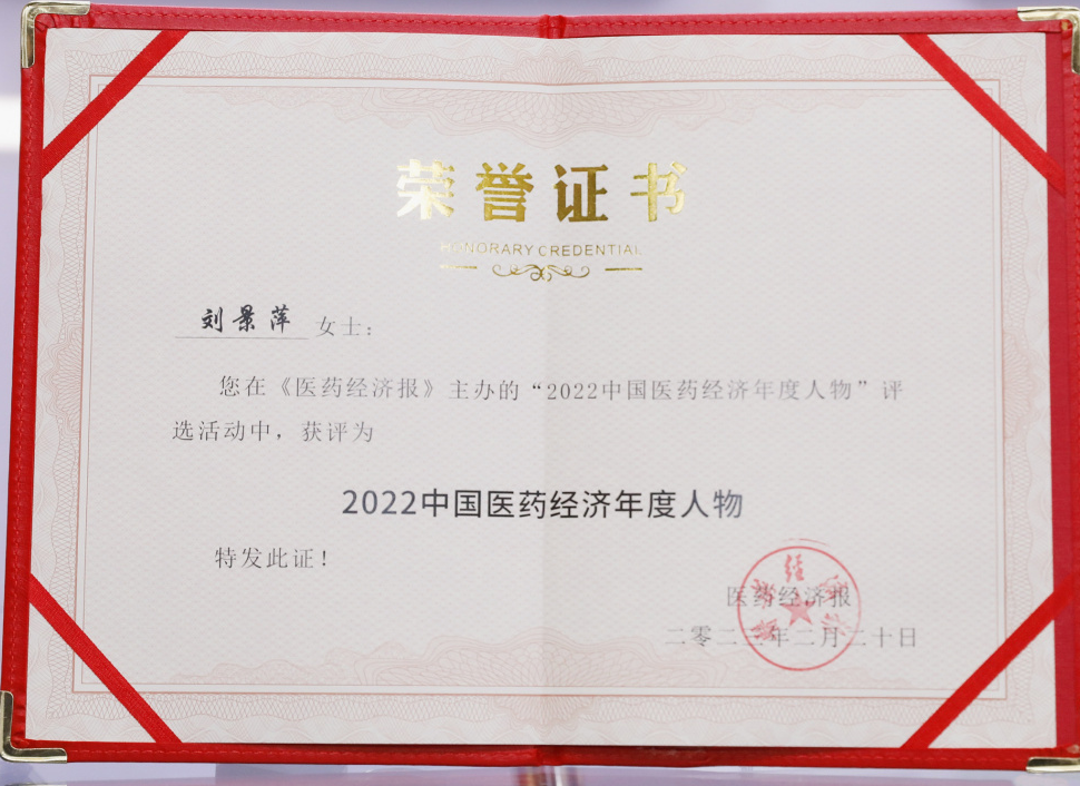 97国际药业集团董事长刘景萍当选“2022中国医药经济年度人物”